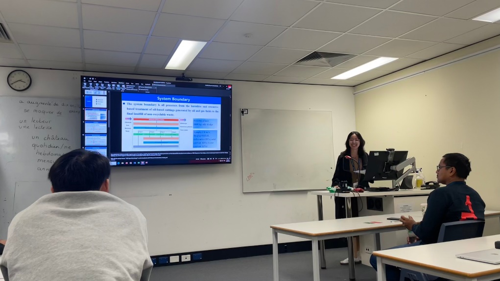 会上,王佳艺同学以“Comprehensive life-cycle assessment of oily sludge treatment technologies incorporating cyclone desorption technology”为题进行了口头汇报。该研究对比了焚烧、溶剂萃取、热解和旋流分离等技术处理含油污泥的生命周期碳足迹评价影响,结果表明旋流分离技术能够实现低碳绿色、高效且经济的处理效果,为工业废物绿色低碳处理提供了新的解决方案。