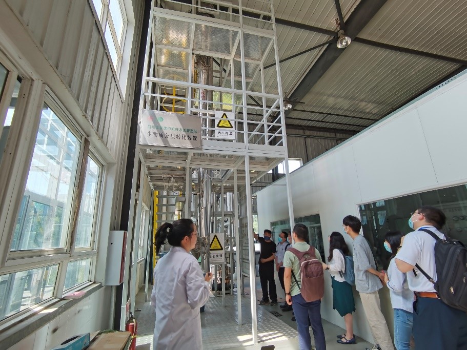 会前,来访人员参观了四川大学碳中和技术创新中心中试基地,包括自主研发设计的废弃生物质如秸秆等“非相变干燥-分质转化-定向转化汽柴油/航煤-联产生物炭催化剂”成套中试装置。随后进行交流,东方锅炉聂立副总经理介绍了公司布局的五大发展方向,包括锅炉装备、节能环保、核电装备、现代制造服务业、新型材料产业等方面,表示将全力与四川大学深化合作,推动资源碳中和关键技术的工程转化,并在生物质干燥、生物质热解以及CO2捕集利用方面开展实质性合作。四川大学科研院高德友副部长介绍了学校科研工作情况,并指出东方锅炉与四川大学的合作方向覆盖面较广,应继续加强深化合作。