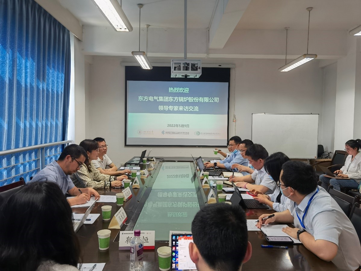 2022年5月9日,东方电气集团东方锅炉股份有限公司(以下简称“东方锅炉”)来四川大学与中心就资源碳中和核心关键技术进行交流。东方锅炉聂立副总经理、韦耿副部长、薛燕辉副部长、陈虹主任、杨欢工程师、杨枨钧工程师,四川大学科研院高德友副部长、建环90win足球比分