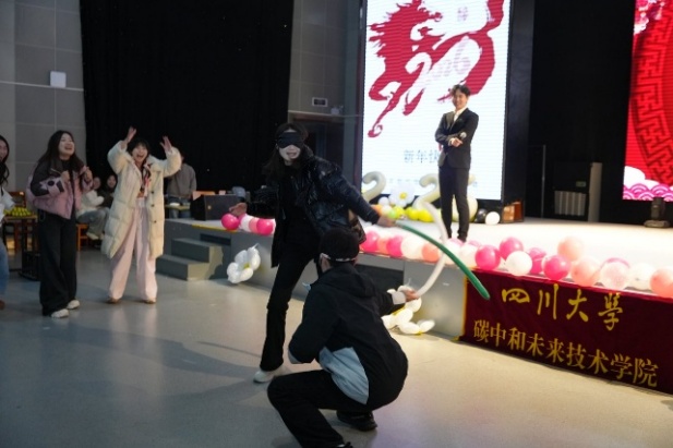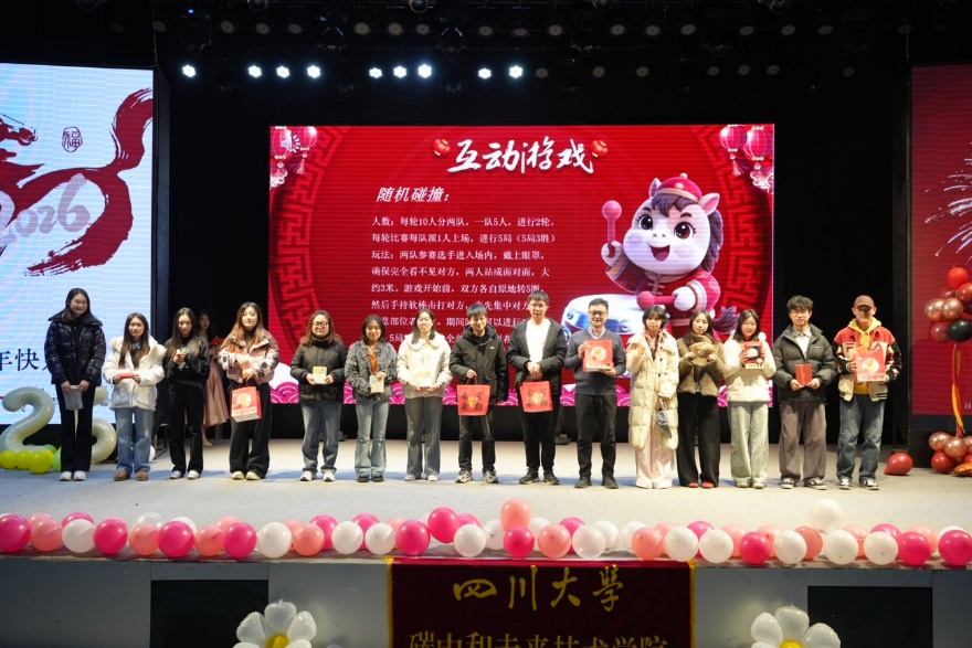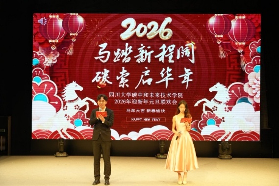 在江安校区隆重举办2026新年联欢会。场馆内灯火璀璨、笑语盈盈,一场精彩纷呈的联欢在此热烈上演,为全体师生送上了真挚的新年祝福。联欢会由硕士生丁月和王子成主持。