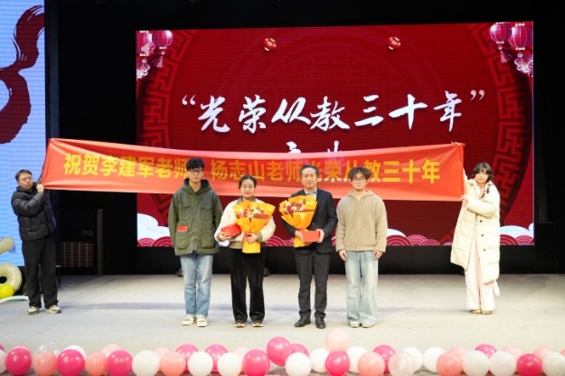 “光荣从教三十年”庆典活动上,祝贺并表彰李建军教授与杨志山副教授两位老师。李建军教授作为教师代表(四川大学“德渥群芳”优秀导师团队负责人)向师生送上新年祝词,分享团队建设及科研工作的相关经验,真切地回顾了三十年的从教经历,将三十载耕耘凝练为对教育事业的赤诚与对科学探索的坚守,并鼓励师生积极奋斗,创造更多高价值科研成果。