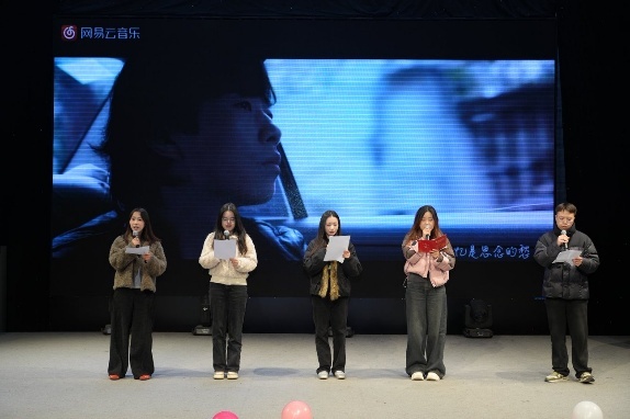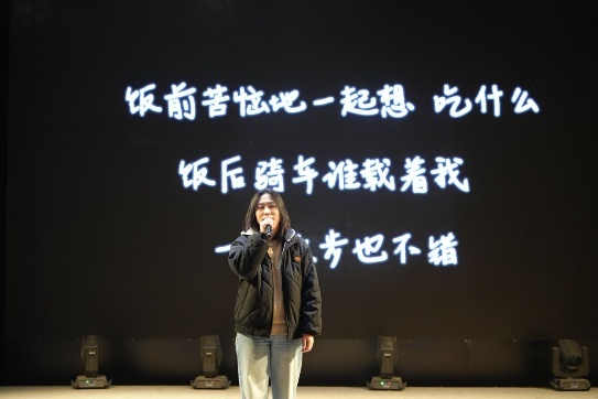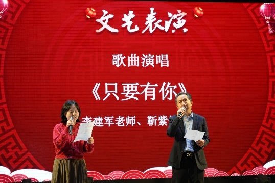 李建军教授与靳紫恒副研究员携手演唱歌曲《只要有你》,歌声中蕴含温暖力量;硕士生刘思润展示了原创歌曲《小屋下》传递了室友间的温情,丁月、李佳雪、卢世荣、何小鹏、惠政豪与课题组同学一同朗诵《我爱科研》表达了对科研最纯真本源的情感,谢凌希、王彭菲以一曲《恭喜发财》引爆全场传递了美好的新年祝福。