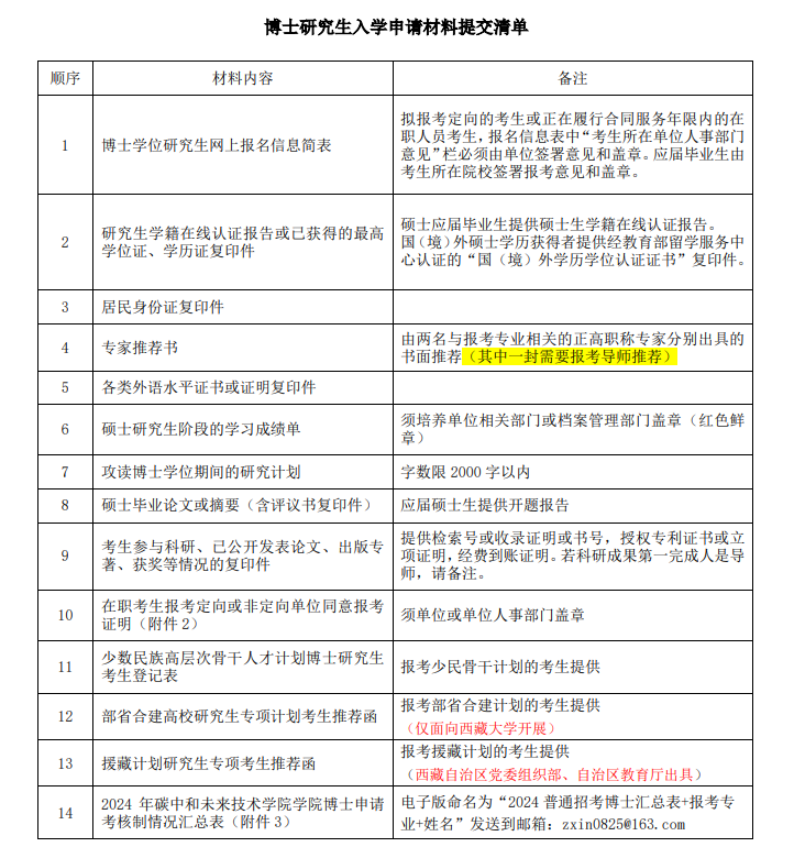 符合报考条件的人员须下载 “提交博士研究生入学申请材料自查表”(附件1),按顺序整理材料,并在2023年12月15日17点前将申请材料和自查表寄送达90win足球比分